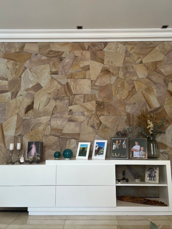 Revestimiento de piedra natural con el que podrás dar una terminación prolija y moderna, aportando todas las propiedades y belleza de este material en los principales ambientes de tu hogar. No requiere mantenimiento y es apta tanto para interiores como para exteriores. Las mismas están dispuestas irregularmente ya que son naturales, por lo tanto los colores y vetas pueden variar.